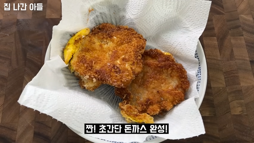 이렇게 맛있는 초간단 돈가스가 완성됐습니다.