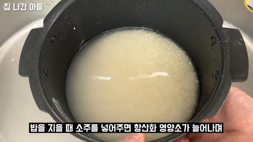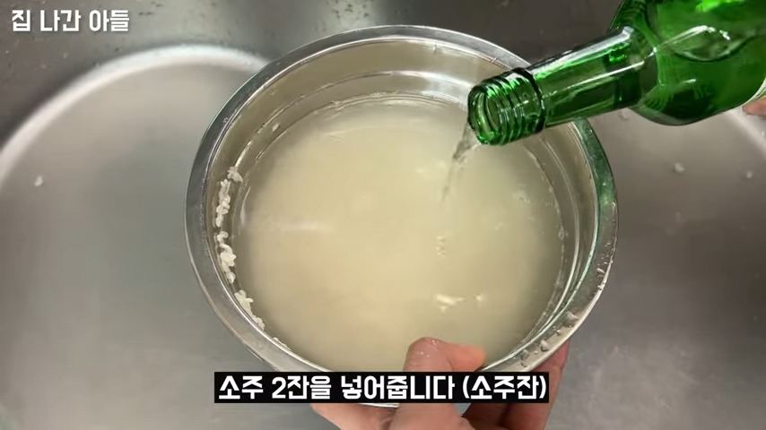 첫 번째 팁은 밥을 지을 때 소주를 넣는 것입니다.