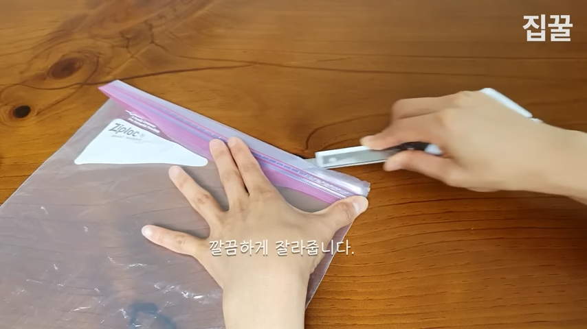 첫 번째, 여러 번 재사용한 지퍼백이 손상되어 더 이상 사용할 수 없을 때, 입구 부분을 가위나 칼로 잘라줍니다.