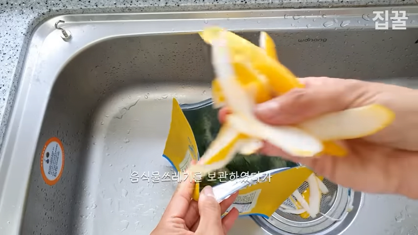 세 번째, 과자봉지의 밀봉 기능을 활용해 여름철 음식물 쓰레기통으로 활용할 수도 있습니다.