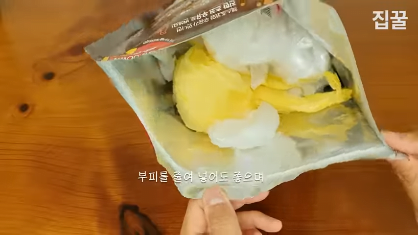 부피를 줄여 넣어도 좋으며, 아무렇게나 과자봉지에 담아주면 됩니다.