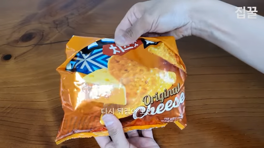 이 방법을 이용하면, 도구 없이도 아주 쉽게 봉지를 밀봉하여 바삭하게 보관할 수 있습니다.