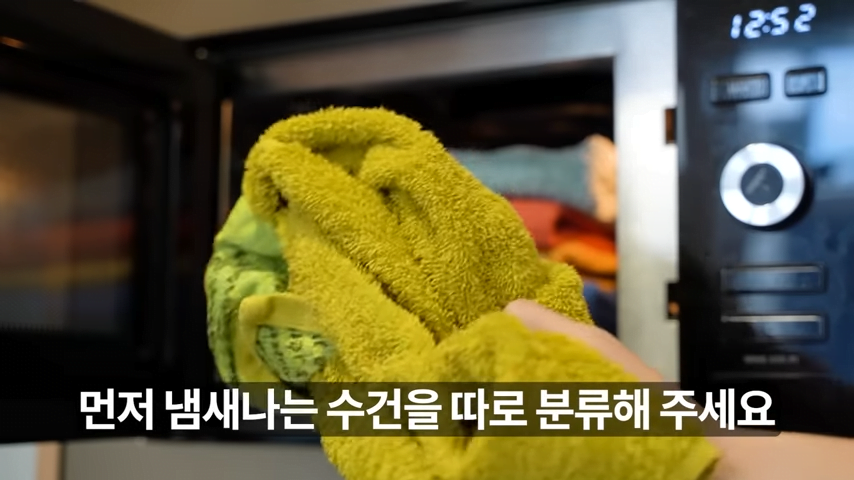 먼저, 냄새나는 수건을 따로 분류해주세요.
