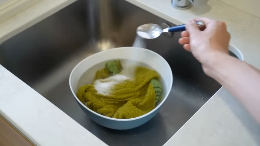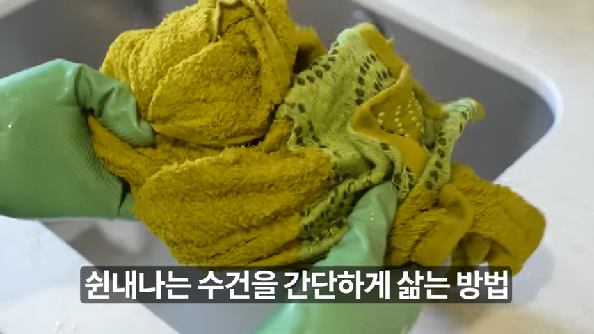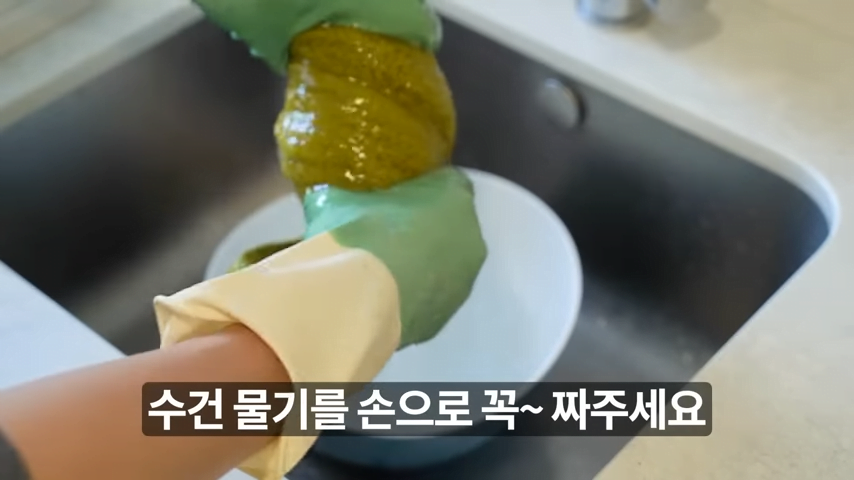 수건에 베이킹소다 물이 잘 스며들도록 해주세요.