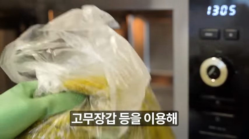 이때, 수건이 매우 뜨겁기 때문에 고무장갑을 이용하여 조심스럽게 꺼내는 것이 좋습니다.