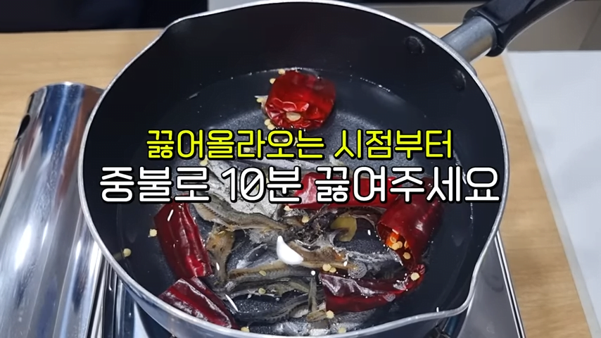 물이 끓기 시작하면 불을 중불로 줄이고 10분간 끓여주세요.