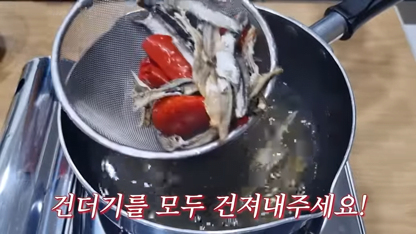 10분 후에는 불을 완전히 줄이고 부스러기는 따로 빼놓아주세요.