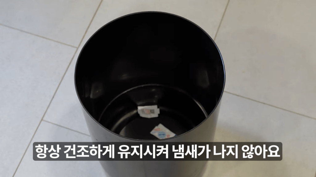 쓰레기 봉지를 씌우고 후에 꺼내보면, 젖은 쓰레기로 인해 바닥 부분이 젖어 악취가 날 때가 있습니다.