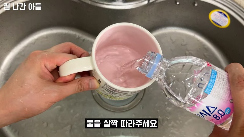 먼저 생수병에 들어 있는 물을 약간 빼내세요.