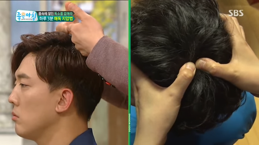 이렇게 정수리와 귀를 눌러서 몸속의 독소를 치료할 수 있습니다.