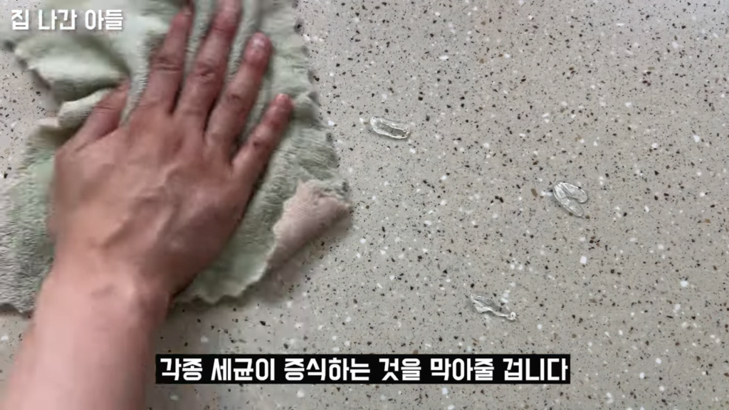 주방 표면 소독하기