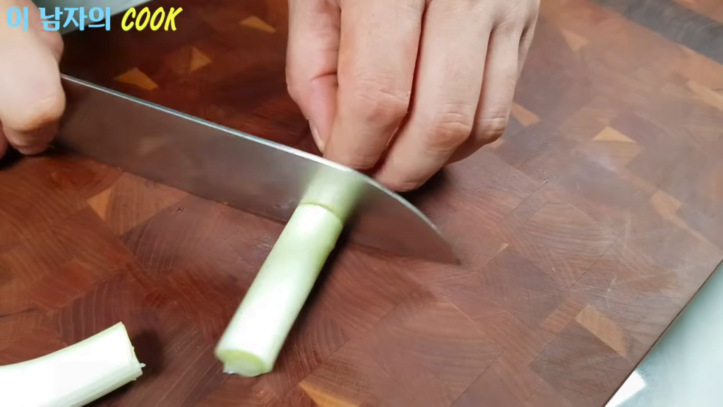대파는 한 줌 정도 준비해 떡볶이 떡과 비슷한 길이로 썰어 주세요.