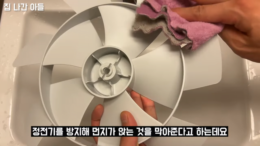 이렇게 린스로 선풍기 날개를 닦아 주시면 정전기가 생기는 것을 방지해 먼지가 하는 것을 막아 준다고 하는데요.