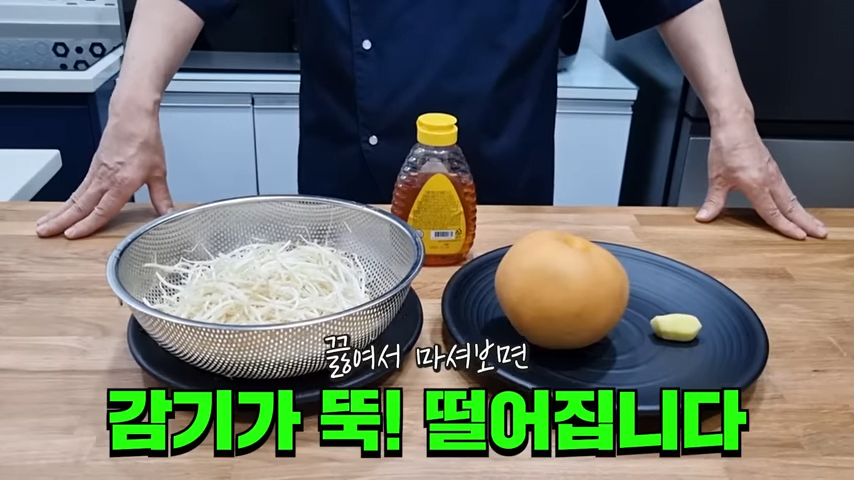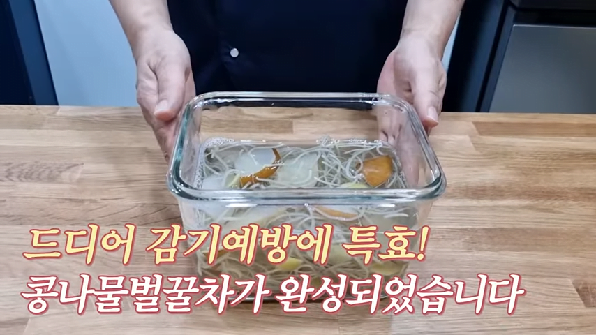 드디어 감기 예방에 특효인 민간요법으로, 콩나물 벌꿀차를 끓여봤습니다.
