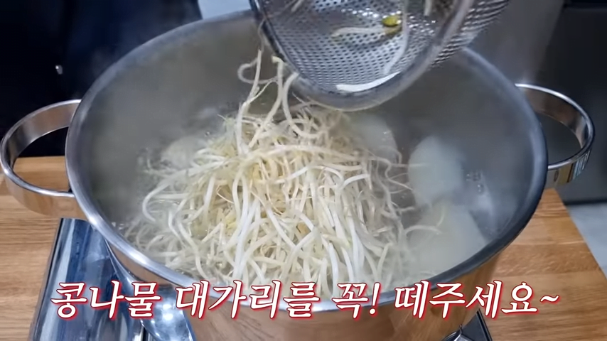 여기에 이제 꼭지를 딴 콩나물을 넣습니다.