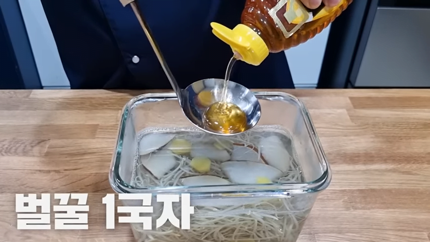 식은 뒤 벌꿀 1국자를 넣어주는데요.