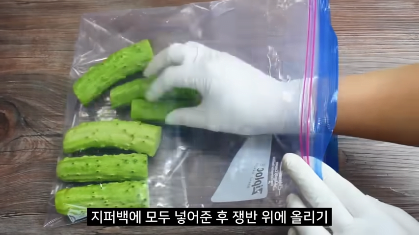 지퍼백에 다 넣은 후, 쟁반 위에 올려두세요.