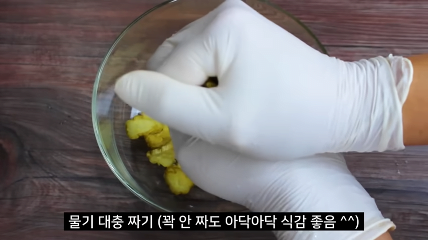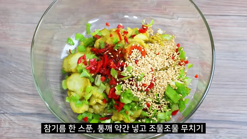 아삭아삭한 식감을 위해 물기를 적당히 짜냅니다.
