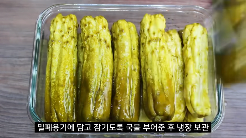 국물을 부어 밀폐용기에 담고 잠긴 후에 냉장보관합니다.