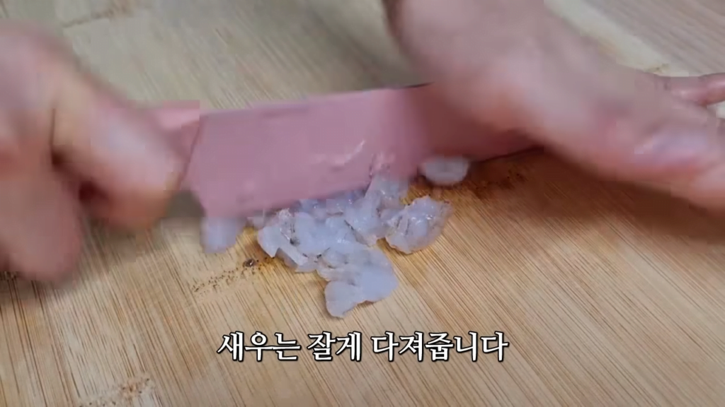 새우가 녹았으면 씻은 후 키친타올로 물기를 제거합니다.