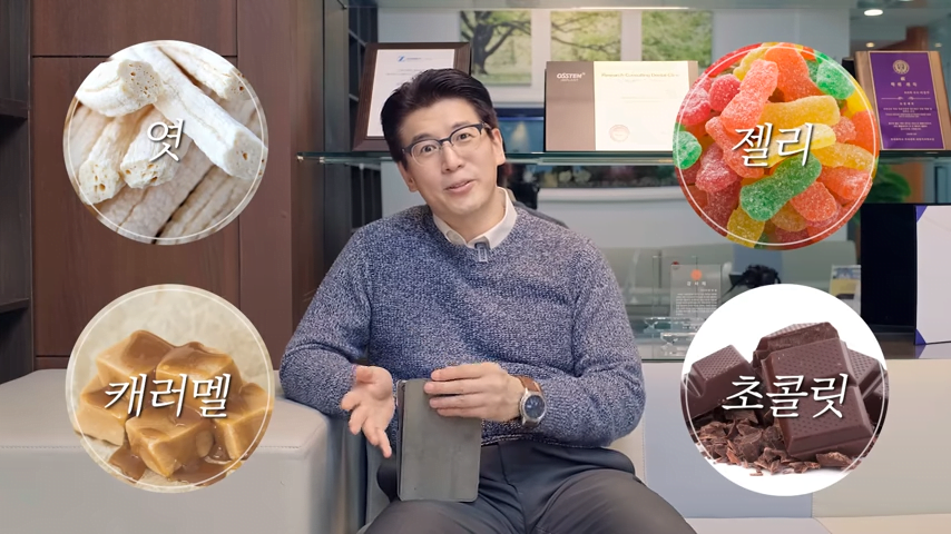 대표적으로 엿, 젤리, 캐러멜, 초콜릿 같은 달콤한 음식은 치아에 좋지 않습니다. 특히 끈적한 음식은 치아에 접촉하는 시간이 길어져서 치아에 해를 줄 수 있습니다.