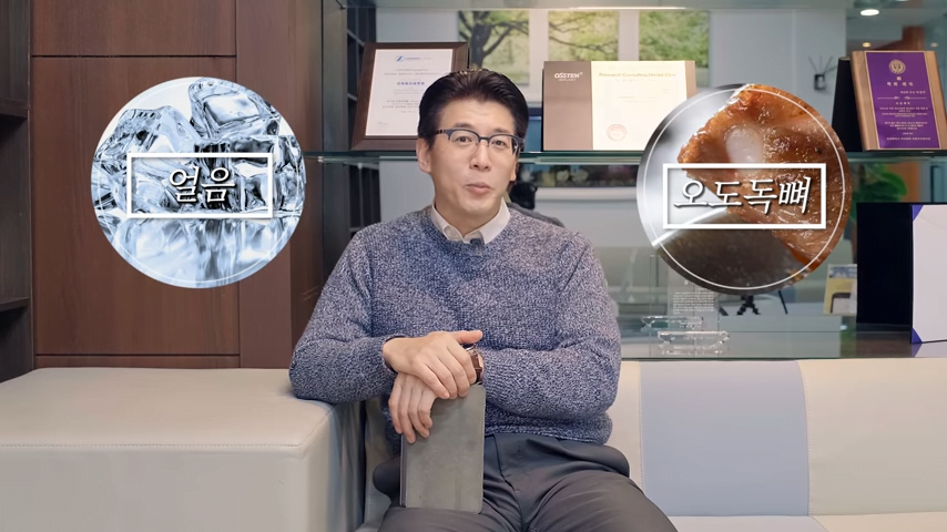 견과류 정도는 괜찮지만 얼음, 오돌뼈와 같은 딱딱한 음식을 먹으면 치아가 금이 가거나 손상될 수 있습니다.