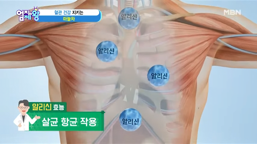 마늘은 60℃ 이상으로 가열하는 과정에서 지용성 물질이 생성됩니다. 이 물질은 혈소판 응집 현상을 막아 고지혈증, 고혈압, 동맥경화, 협심증, 심근경색을 방지합니다.