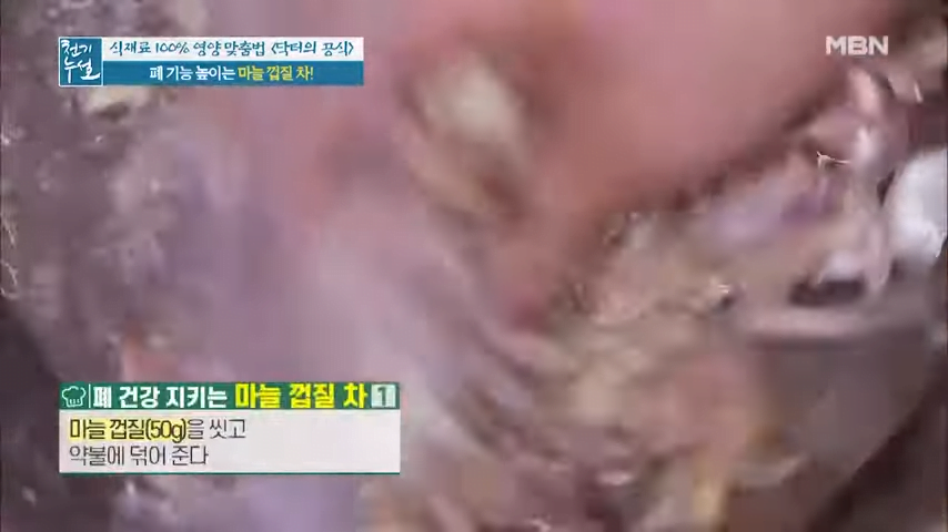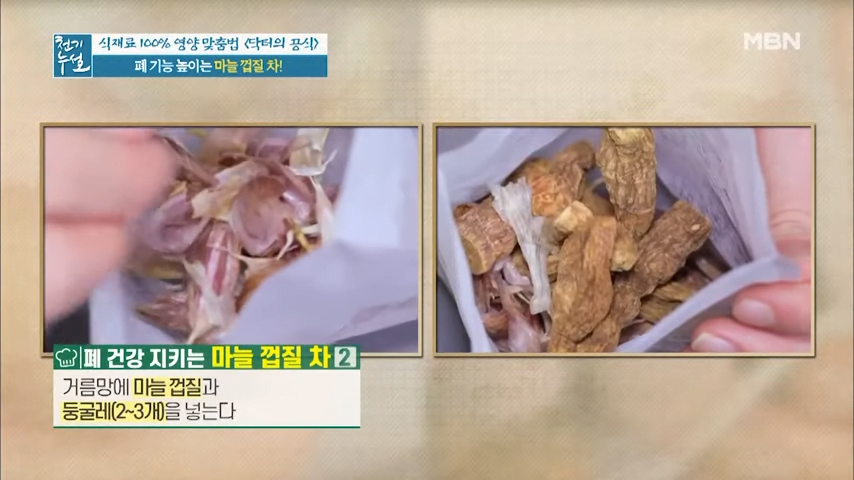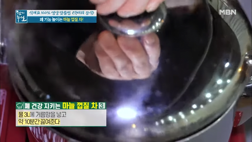 그럼 폐건강에 좋은 마늘 껍질 차가 완성됩니다.